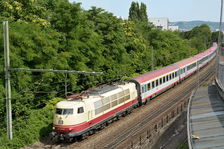 103 235 ist bei Stuttgart-Nord mit IC 118 unterwegs