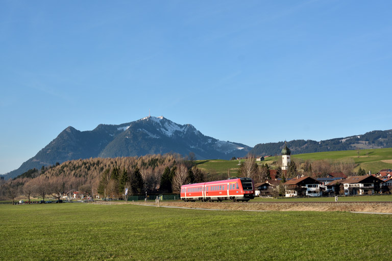 612 091 ist bei Altstädten als RB 57651 unterwegs nach Oberstdorf (09. April 2015)
